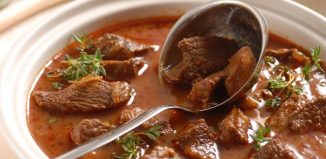 Potřebujete: 600 g jeleního masa 1 větší cibuli mast sůl, pepř mletou sladkou červenou papriku rajčatový protlak tymián 2 stroužky česneku masový vývar sušený...